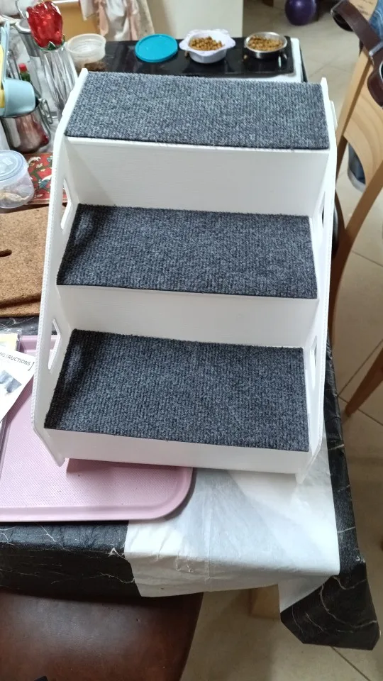 - Deja que tu mascota inspeccione la escalera con supervisión; ofrece golosinas para reforzar el uso.