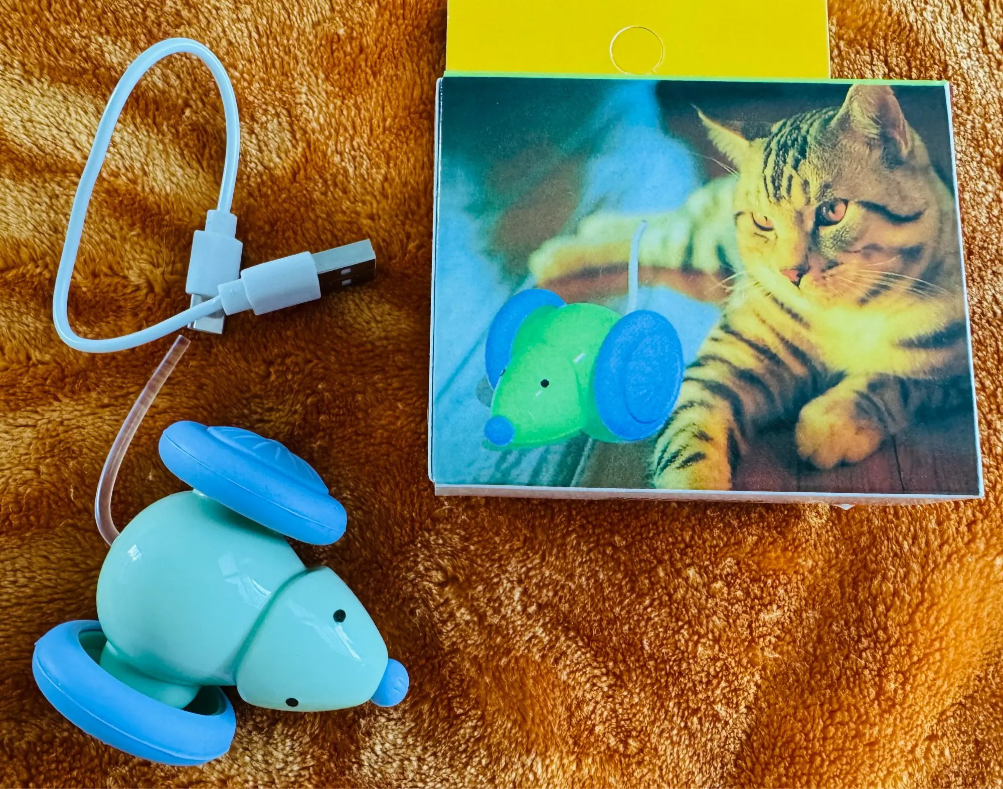 interactivo recargable en forma de ratón/coche. Diseñado para imitar movimientos realistas, se desplaza automáticamente y evita obstáculos, por lo que no se queda atascado y ofrece horas de juego dinámico. Fabricado en ABS + TPU resistente, con bordes redondeados y una batería recargable de 220 mAh que se carga por USB — más económico y sostenible que las pilas