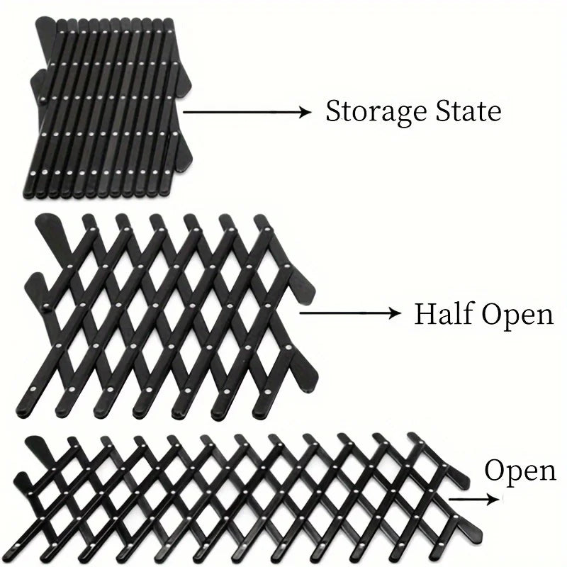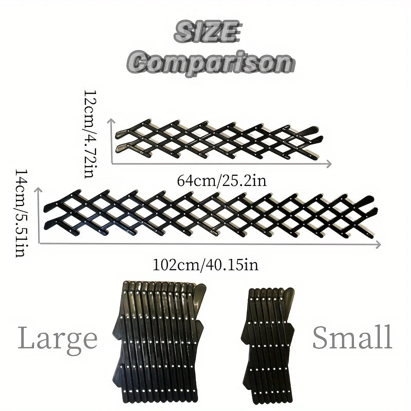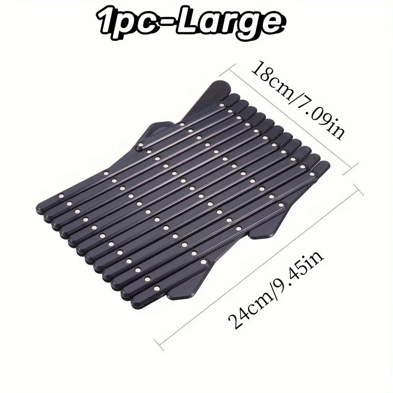 Las parrillas son retráctiles: cuando están completamente abiertas miden 64×12 cm (pequeña) y 102×14 cm (grande); una vez plegadas para guardar ocupan 24×11.5 cm y 24×18 cm respectivamente. Ideal para viajar y guardar fácilmente en la guantera o maletero. 🧳✨